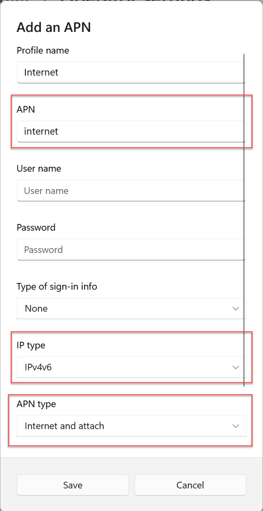 Just spent several hours fixing the “No service” cellular issue in my Lenovo T14 AMD Gen 2 with Quectel EM120R-GL. The notebook was able to search for networks (when disabled the automatic network selection), but was not able to connect to internet (Vodafone CZ mobile provider).